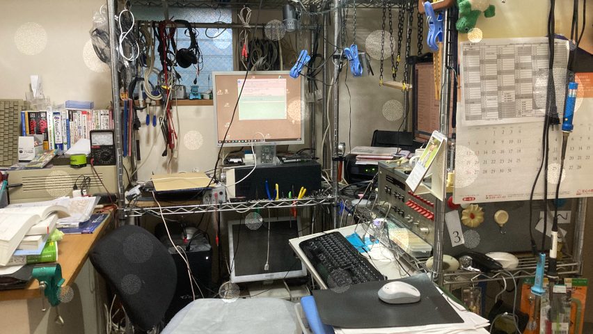 左下の元画像ファイル(myroom.png)がある時、これを表示してクリック操作で、オーブを描き、右下のような画像を生成するプログラムです。