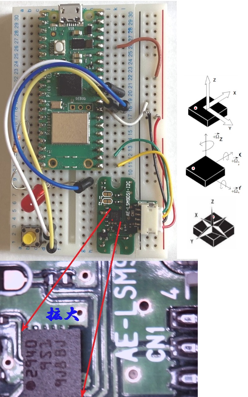 - LSM9DS1-I2C赤_1Pin−PicoW_3.3V_36Pin